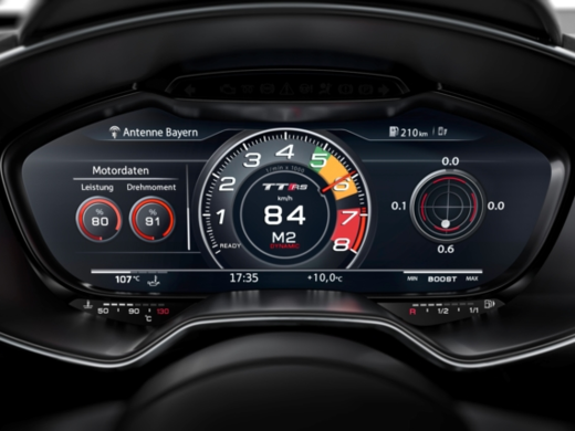 Anstelle eines analogen Kombiinstruments mit einem kleinen Display für die Bordcomputeranzeige, findet sich ein großes Display – das vollgrafische Kombiinstrument – hinter dem Lenkrad. Das bietet dem Kunden die Möglichkeit, sich neben den verkehrsrelevanten Anzeigen weitere Informationen des Infotainment- und Navigationssystems im näheren Blickfeld anzeigen zu lassen, ohne die Aufmerksamkeit über das Geschehen auf der Straße zu verlieren. Zu diesem Zweck setzt die e.solutions seit der Geburtsstunde des Konzepts bei Audi im Jahr 2011 das User-Interface um und entwickelte alle Funktionssoftwarebausteine, die zur Anzeige der Fahrdaten sowie zur Dartstellung und Bedienung benötigt werden.